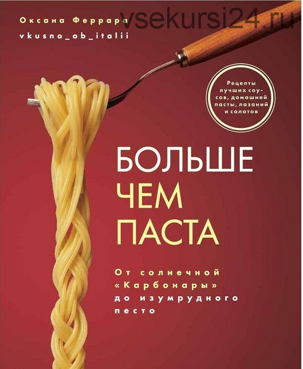 Ароматная, тёплая, сытная, любимая – паста и блюда из неё могут быть разными, но всегда будут вкусными. Популярный блогер Оксана Феррара (vkusno_ob_italii) признаётся в любви к пасте: каждый её рецепт пропитан южным солнцем и ароматом пряных трав. При этом никаких сложностей и никаких экзотических ингредиентов! Вы узнаете секреты итальянской диеты, научитесь правильно использовать оливковое масло, без труда приготовите идеальный томатный соус и сразу несколько вариантов песто. Знакомьтесь с классикой: очаровательными тортеллини, кроликом по-икситански, лучшей «Карбонарой» и аппетитным мясным рагу. Готовьте лёгкие и питательные салаты, добавьте в пасту тыкву, морковный крем и даже картофель! Подайте к обеду равиоли со шпинатом, розовые спагетти, румяное пастиччо, блинную лазанью с грибами или маккерони с сочными фрикадельками.