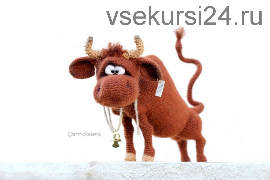 1. Любая основная пряжа. Для вязания бычка во время оформления мастер-класса я использовала пряжу Alize ANGORA REAL 40 (480м/100г), цвет - 690 (коричневый меланж), крючок - 1,5, расход - около 50г.